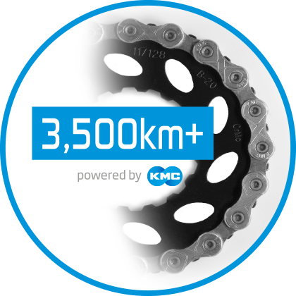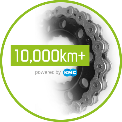 Yhdistämällä huolella valitut, huippulaatuiset komponentit, voimme taata tuotteillemme ennennäkemättömän kestävyystakuun. Valitsemalla KMC:n ketjun ja rattaat, takaamme 3500+ kilometrin tai jopa 10000+ kilometrin kestävyystakuun!